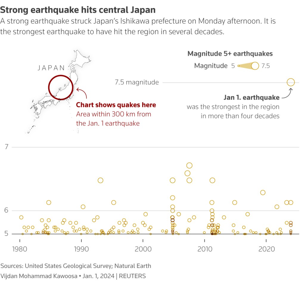 Japan, located on the Pacific “Ring of Fire”, is no stranger to seismic activities. The Noto Peninsula, in particular, has a history of geological unrest, underlined by its complex tectonic setting. This recent earthquake presents an opportunity to examine the dynamics of seismic activity in this region.